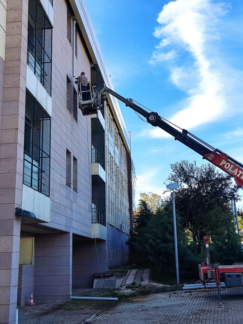 Polatlı Adliyesi bünyesinde kışa hazırlıklar tüm hızıyla devam etmektetir. Adliyemiz dış cephede mevcut bulunan yağmur suyu tahliye oluk ve iniş boruları tadilatları yapılmakla, çatılarda yağmur suyunun kontrollü bir şekilde zemine veya drenaj sistemine yönlendirilmesini sağlanmıştır.